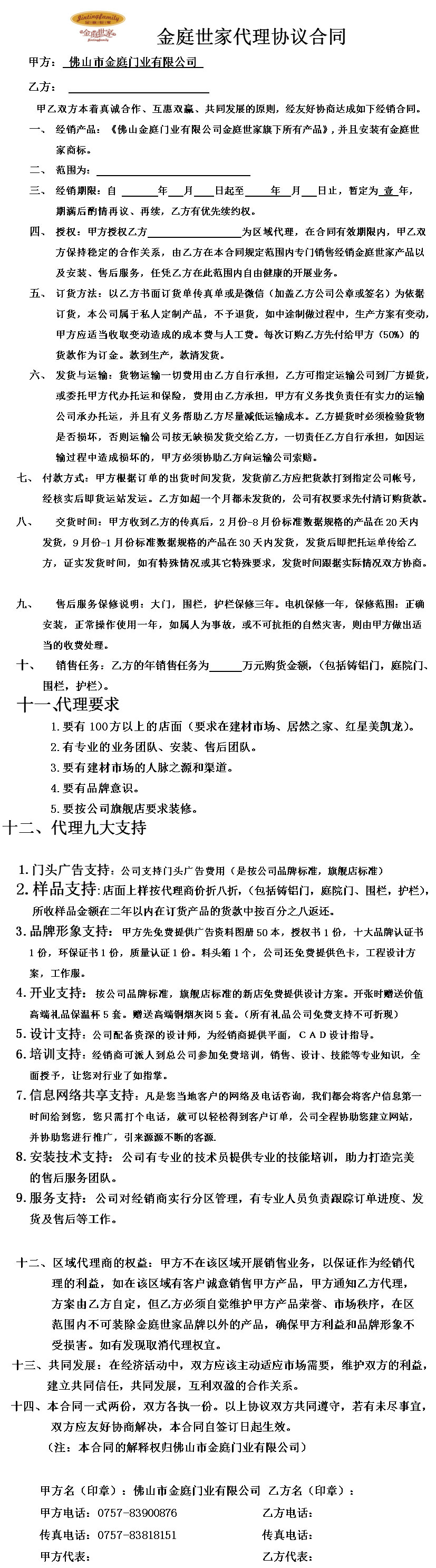 2申請人及他的團隊有1年以上的庭院門行業(yè)銷售經驗。